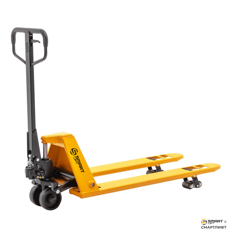 Тележка СМАРТЛИФТ (SMARTLIFT) SD-LP (BFL15) оборудована обслуживаемым гидроузлом, что повышает долговечность использования. Полиуретановые колеса подходят для транспортировки грузов по бетонным и полимерным наливным полам, не оставляют следов на линолеуме. Прорезиненная рукоятка повышает удобство поднятия вил и управления тележкой, металлические ролики вил рассчитаны на большую нагрузку и допускают перемещение по поверхности с небольшими неровностями.