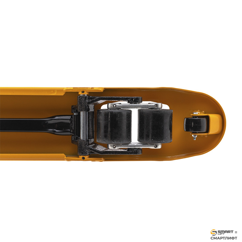 Тележка СМАРТЛИФТ (SMARTLIFT) SD-W (BF25) PDP оснащена полиуретановыми колесами и сдвоенными (тандемными) полиуретановыми роликами, что обеспечивает максимально комфортное передвижение тележки по ровным (наливным) полам. Конструкция крепления сдвоенных (тандемных) роликов из полиуретана позволяет легко преодолевать небольшие неровности, а наличие дополнительного ролика на конце вил делает удобной работу с паллетами поперёк.