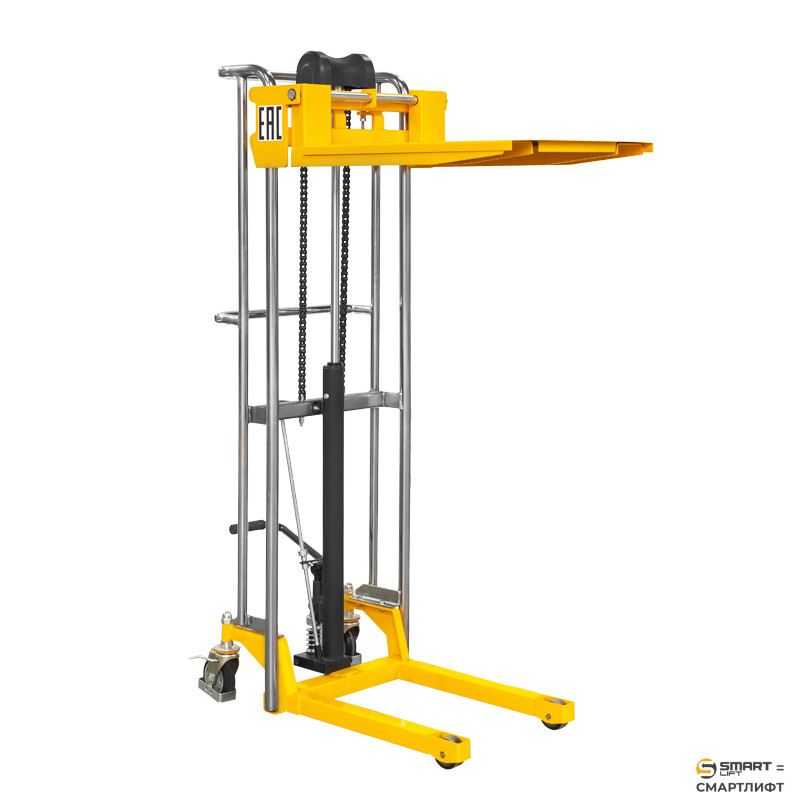 Ручной гидравлический штабелер СМАРТЛИФТ (SMARTLIFT) SDDJS1500 (400 кг; 1,5 м; с вилами и площадкой)