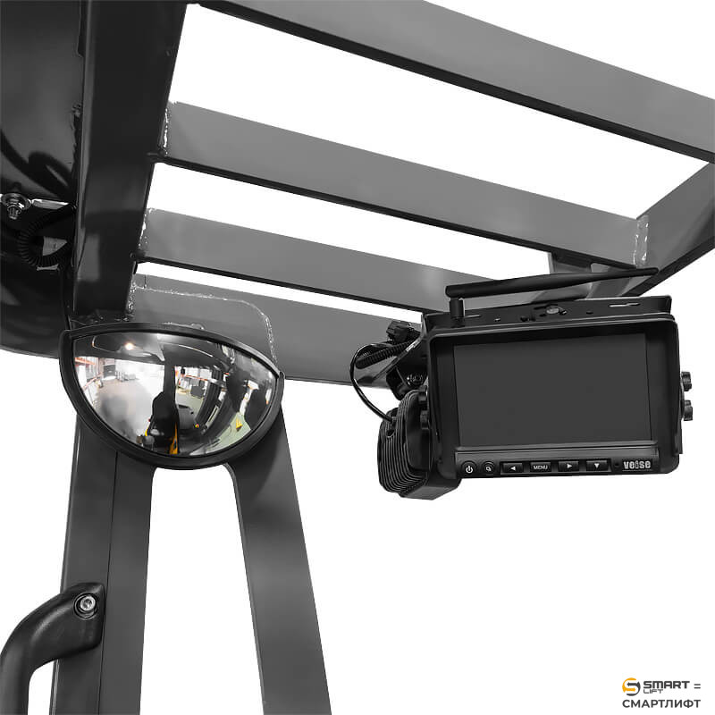 • возможность установки камеры на вилах — изображение выводится на дисплей, что помогает оператору точнее контролировать движения рабочих элементов;