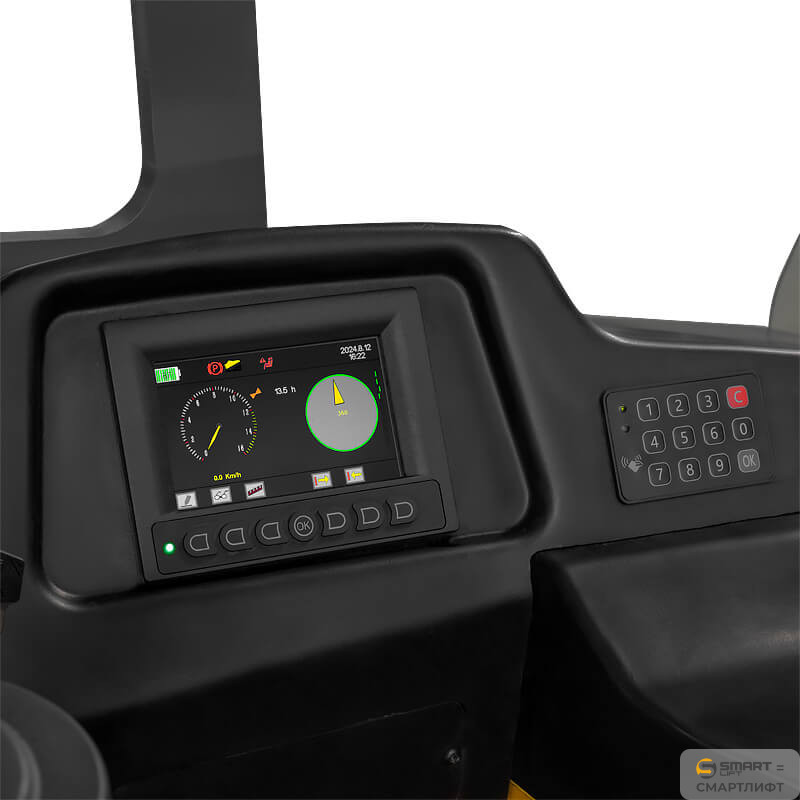 Ричтрак СМАРТЛИФТ (SMARTLIFT) MFZ-L16H — высокопроизводительная техника, которая используется для перемещения грузов в торговых центрах, таможенных терминалах, логистических комплексах, на товарных базах и складах со стеллажными системами. Управление функциями гидравлики оператор осуществляет при помощи мини-рычагов — они расположены на подлокотнике. Беспрепятственное перемещение по рабочей площадке обеспечивают прочные колёса Производитель предусмотрел надёжную конструкцию опорных консолей, которые защищают ричтрак от опрокидывания.