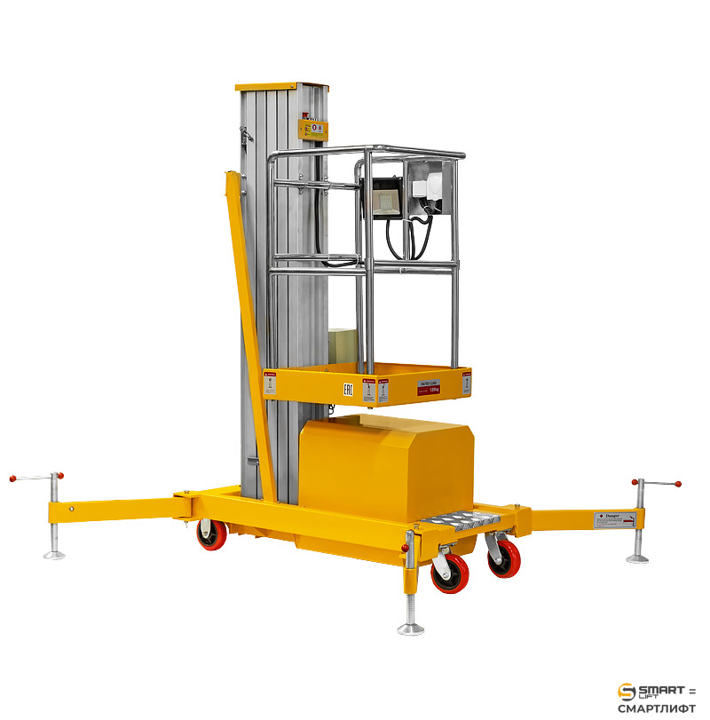 Для безопасной работы в конструкции мачтового подъемника предусмотрены выдвижные аутригеры, повышающие устойчивость оборудования при работе. Такой подъемник станет незаменимым инструментом для широкого спектра работ.